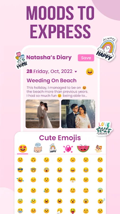 You can beautifully customize your feeling notes by changing backgrounds, text colors, and fonts in this mi diario daily journal diary app. You can choose emojis and text styles according to your current mood by using this daily bean my diary app.