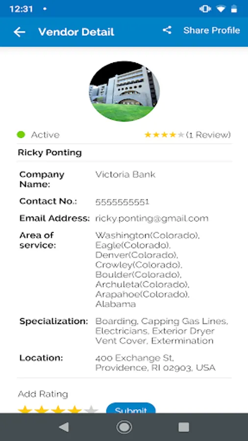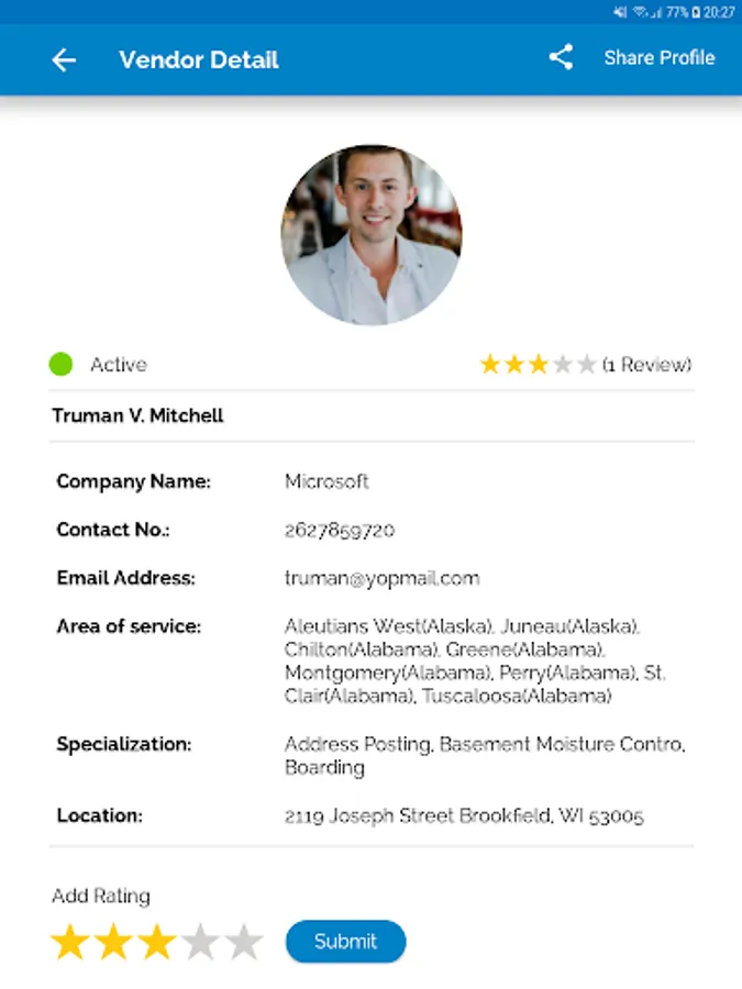 - External sharing of vendor profiles, so that they can be further evaluated outside the application.