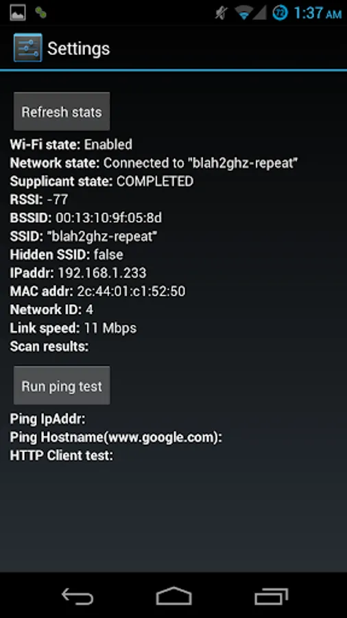 ► Access to low level information about your previous and current wifi connections, including the current signal in decibels.