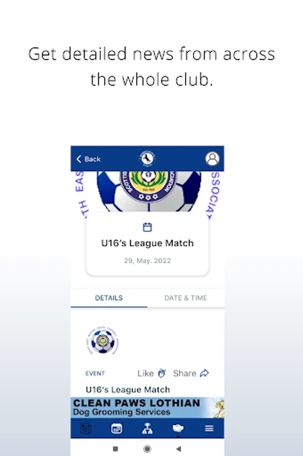 Our news feed contains news and stories from across all the Tranent Colts age groups and teams, as well as developments from other parts of the club and the community we represent. You will never miss an event or an update from the club again with notifications directly to your device from the app. Direct from the volunteers making it all happen to you on our brand new official club app. Supported & sponsored by the local business community too.