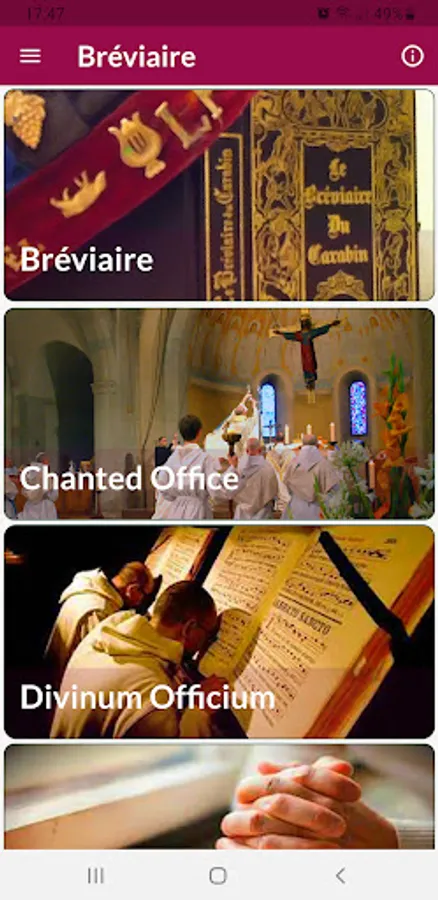Our app intends to be the most complex app in the Google Play Store with Catholic Breviary offering the user as many options as possible. The Breviary is a book in which is the Liturgy of the Hours (hymns, psalms, prayers, short biblical texts). It is made up of 5 offices: