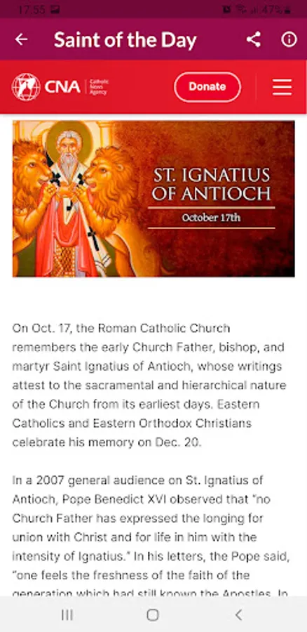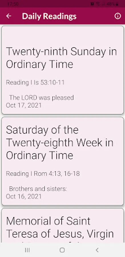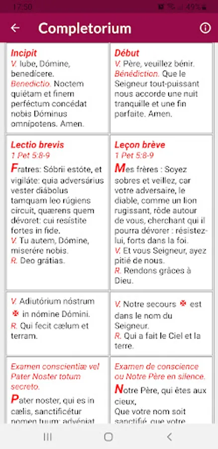 Our app gives you from the start a text version of the Breviary Liturgy of the Hours with the holy bible Old Testament and New Testament with a Psalms section. We have a very special section with the Saint of the Day where you can read everything about the Saint from that day on.