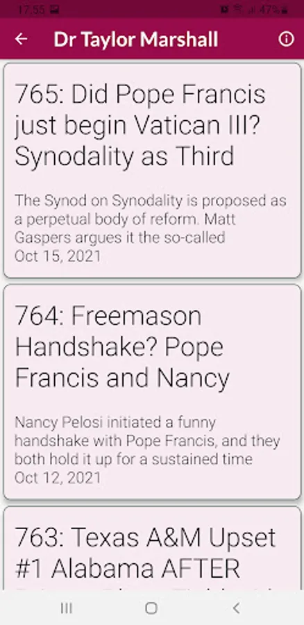 We have many live Catholic news sections where you can read everything important to Catholics. Examples: Catholic News Agency, Crux News, Catholic Education Center, and Dr. Taylor Marshall podcasts.