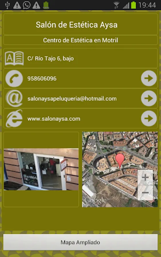 For each trade a page with relevant data, from which you can call, visit the website, send an email, view a map and get directions to reach it is offered.