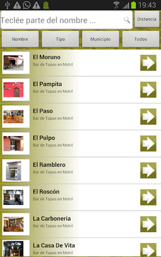 You can display the nearest shops to the current position or accommodation, filtering by type of trade, or by distance.