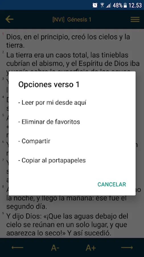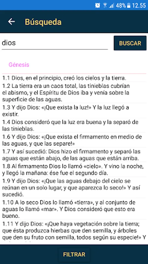 With only 2 touches you get to the verse of the book you want! You do not have to write anything. You can save as favorites, copy, share or send via sms verses that you like (select one or more). You can also do search by word or phrase.