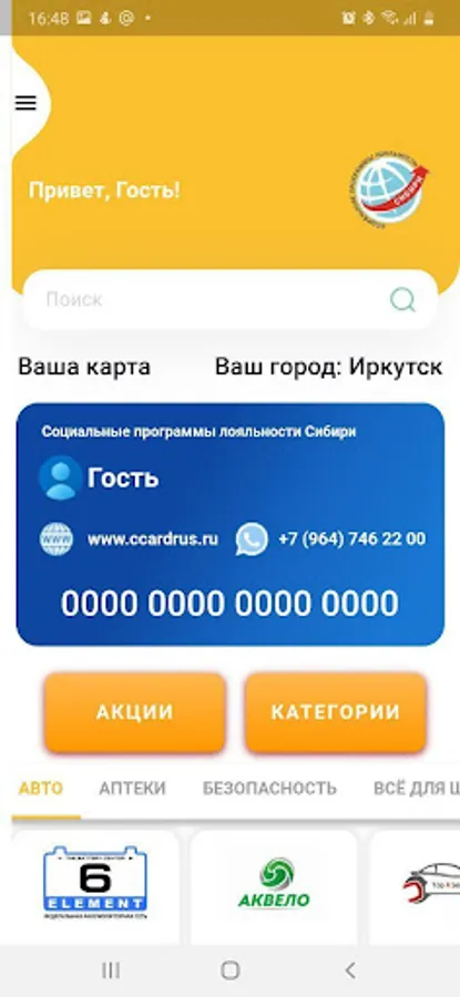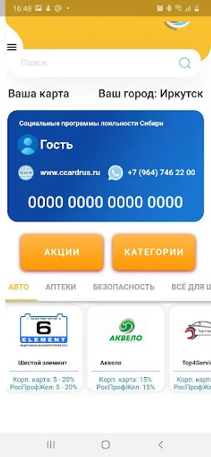 The corporate loyalty card acts as a universal discount card, the holders of which receive discounts at various enterprises in the city of Irkutsk, Irkutsk region and the Republic of Buryatia.