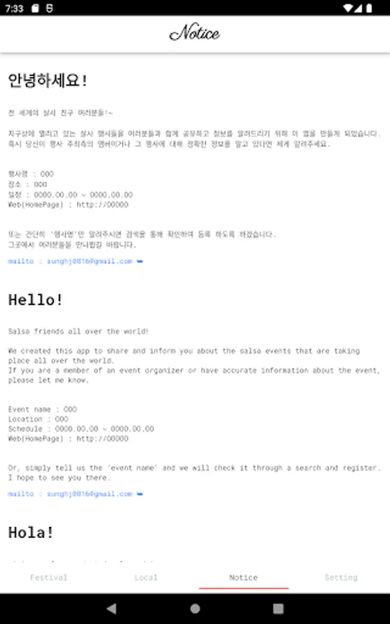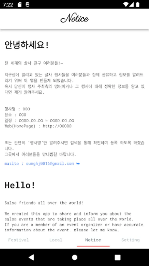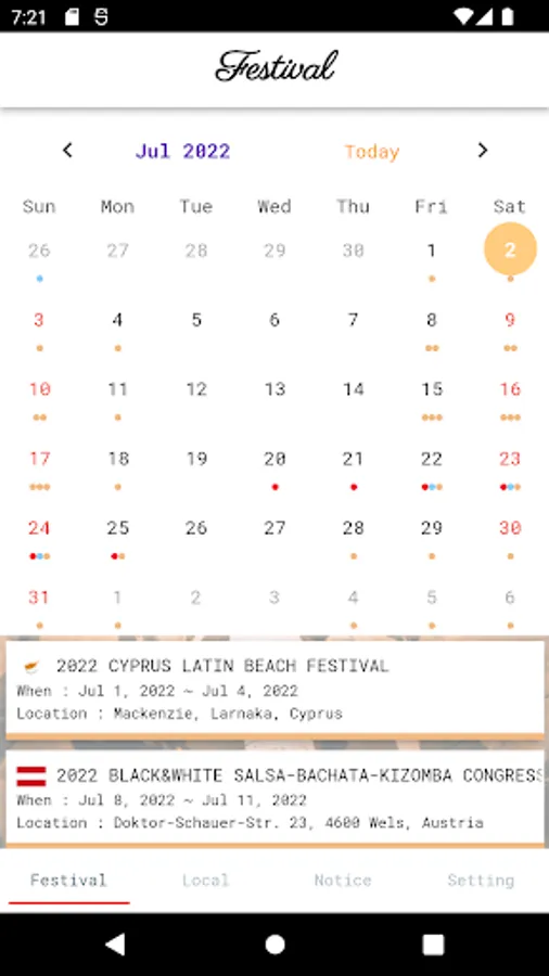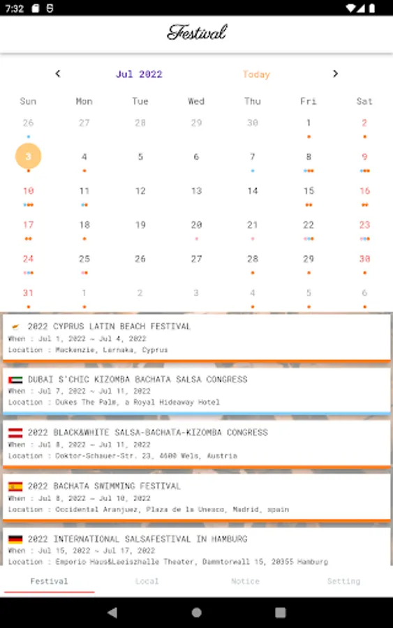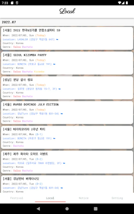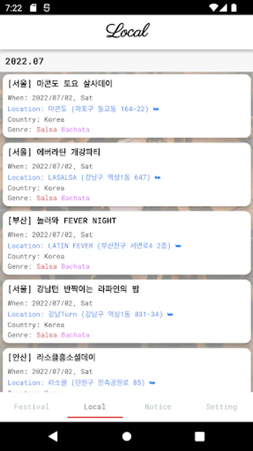 # Global events such as salsa, bachata, and kizomba can be checked through the gallery.