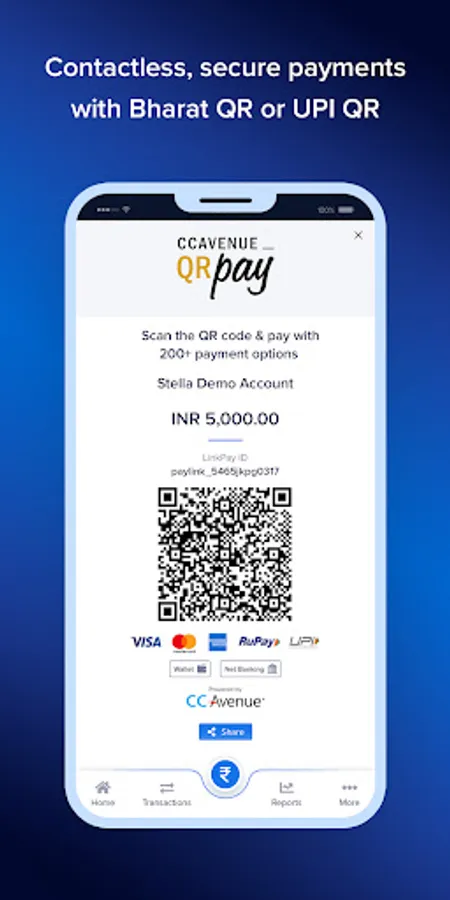 Offer secure & contactless payments with CCAvenue QR, UPI QR or Bharat QR. Your customers can simply scan & pay via any UPI enabled App.