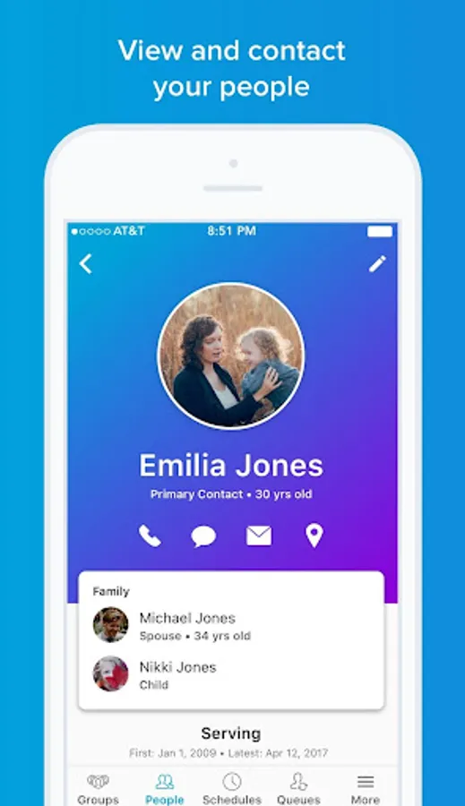 • See and edit information about your people and their family, and contact them easily with the built-in tools