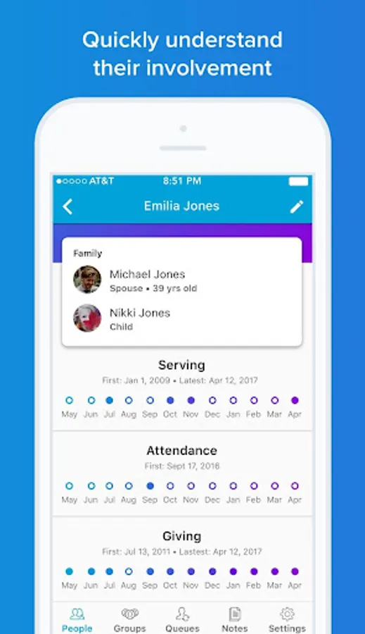 • Quickly understand a person's history and involvement in the church with the Timeline