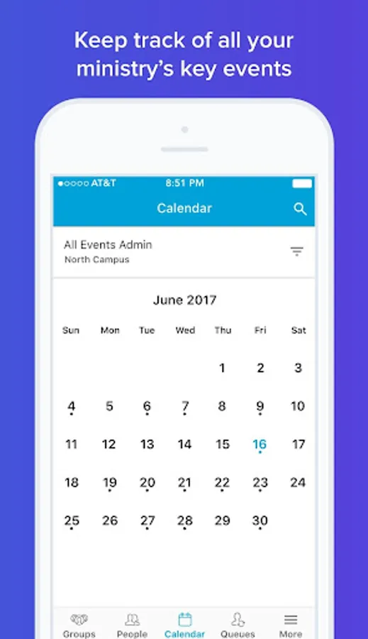 • Use Admin Calendars to see the details of all the events happening in your church across your various campuses