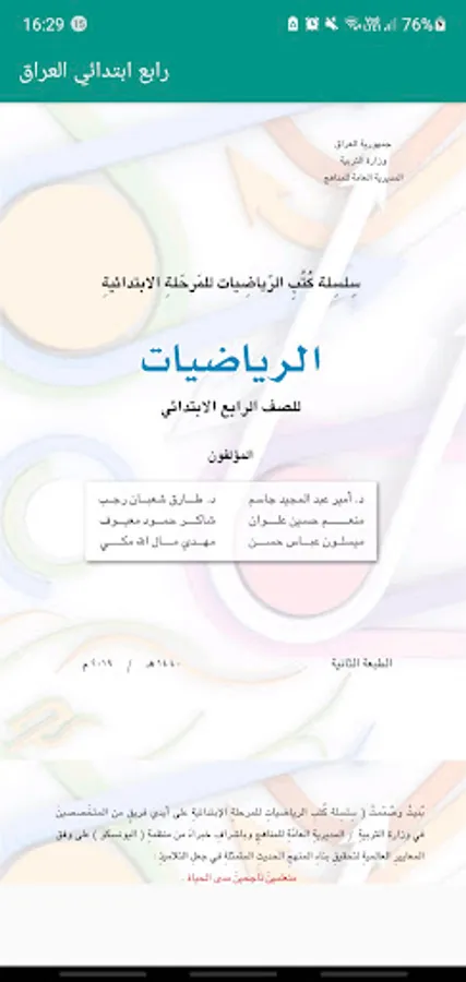 An application that provides you with all the books of the fourth grade of primary school for Iraq with the latest official edition of the Ministry