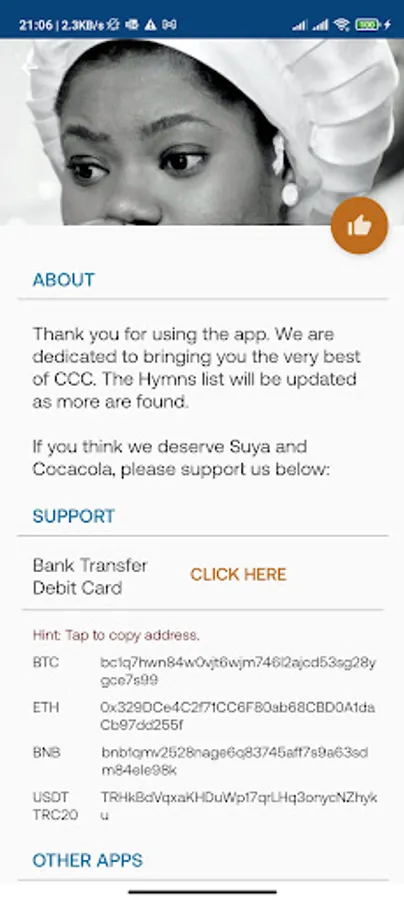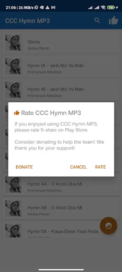We thank everyone that has contributed to this, CCC Akoka Parish and Emmanuel Adediran for most of the CCC Hymn Mp3s compiled in the current version of this app.