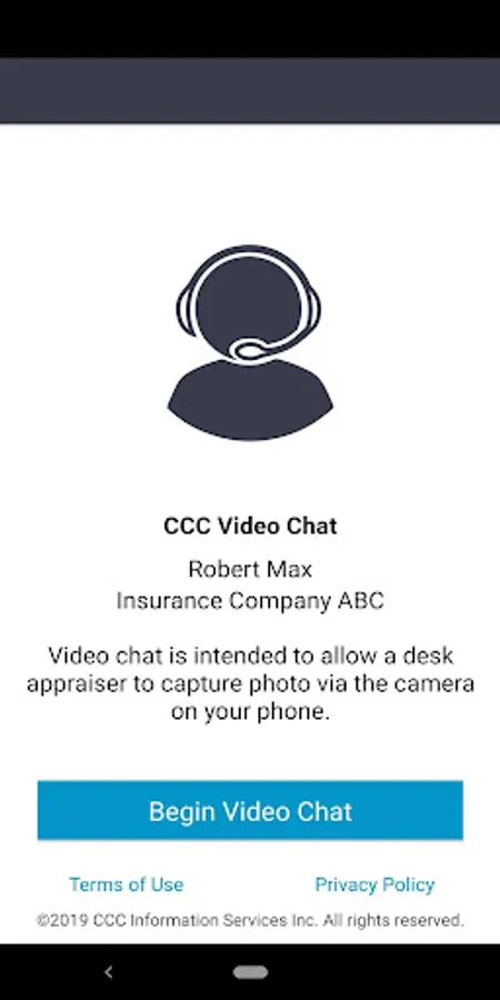 CCC® Video Chat will help expedite your incident or claim by allowing you to interact with your insurance company through a live video session. The app will allow you to share a live video feed through your mobile phone so your insurance company can capture the pictures of your vehicle’s damage.