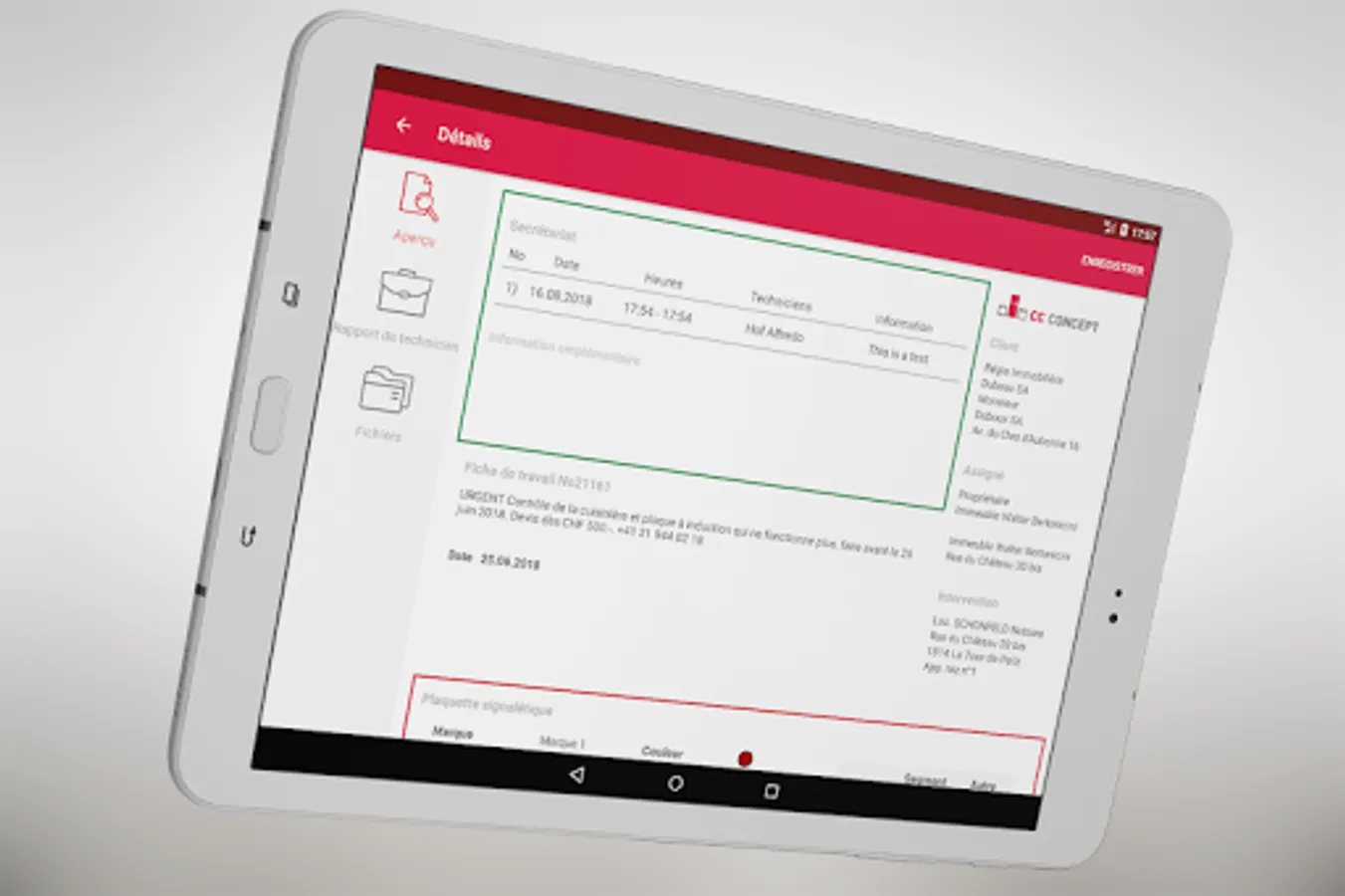 L’application CC Concept permet de diminuer les documents papiers, elle initie la digitalisation des informations. Elle permet également d’optimiser le temps de retour des offres chez les clients. L’ajout des photographies pour les situations avant installations et après installations offres aux mandataires des vérifications supplémentaires. Ils pourront alors constater que les travaux ont été très bien réalisés par des techniciens professionnels de CC Concept. Les informations peuvent être entrées de manière traditionnelle ou de manière vocale, ceci afin de gagner du temps. L’application est conçue pour permettre des évolutions, des adaptations et des améliorations futures. Fruit du développement interne de M&H Atlon Services SA qui comprend parfaitement et rapidement les besoins pour les faire passer du virtuel au réel avec une transparence déconcertante.