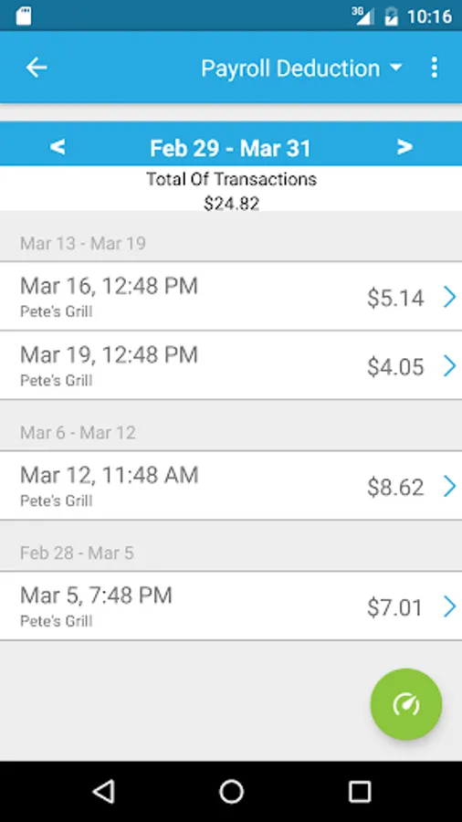 • View actual charges by cycle, including payroll deduction and meal plan accounts