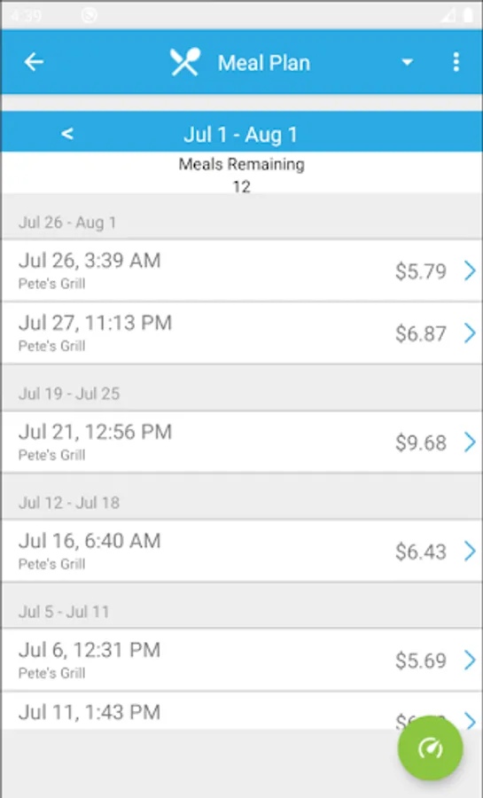 • View actual charges by cycle, including payroll deduction and meal plan accounts