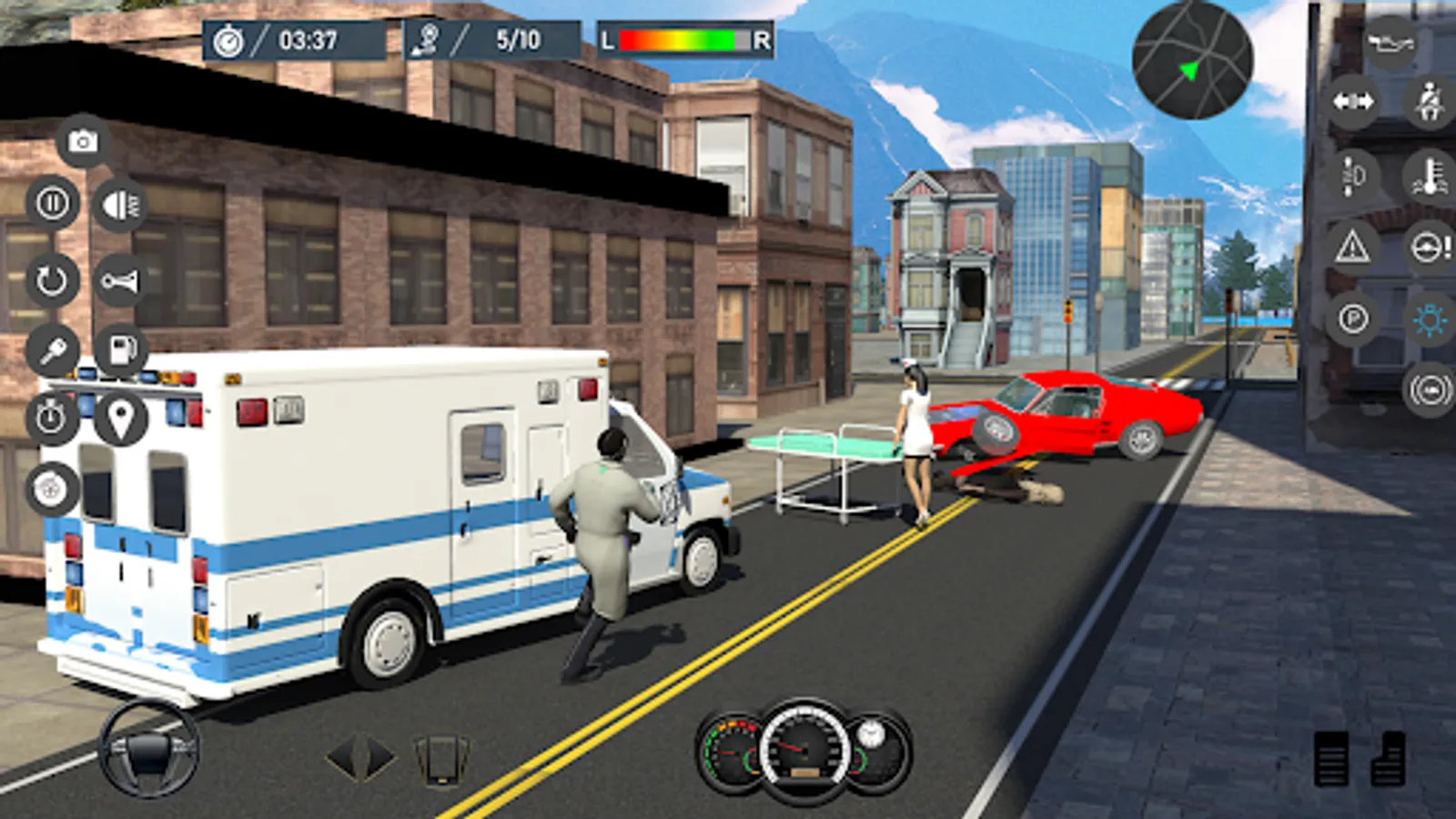 - Amazing Navigation system and siren ON/OFF button in American ambulance accident games.