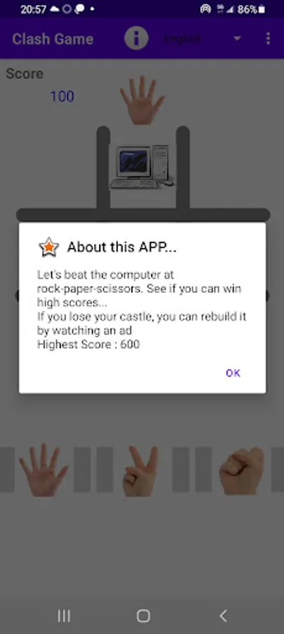 Lassen Sie uns den Computer mit einer Stein-Papier-Schere schlagen. Sehen Sie, ob Sie Highscores gewinnen können ...