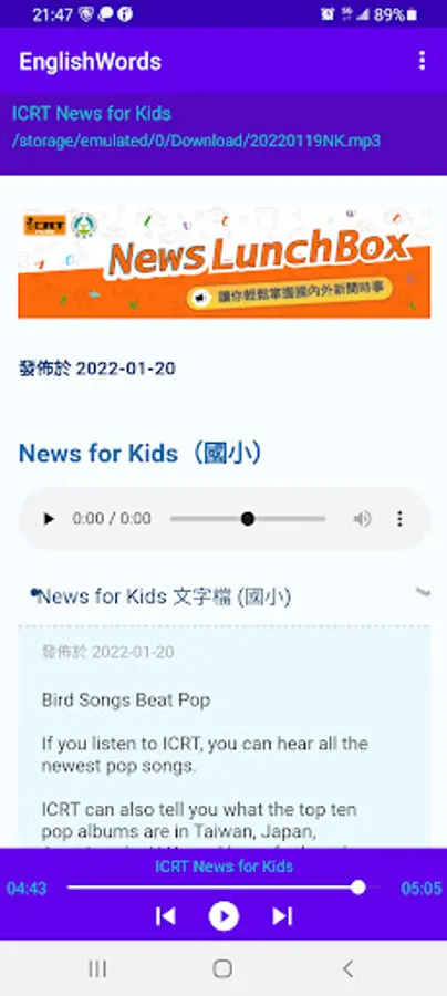 ICRT News For Kids is a high-quality program that is easy to understand. It is an introductory textbook for improving your English ability! You can use this APP to record English words that you don’t know when listening to English news. Just spend some time every day listening and reading it a few times. The content, you don’t need to memorize these words deliberately, you can easily enter the memorized word area from the vocabulary area to be memorized, and then archive this English word into your permanent memory! Invite everyone to accumulate English vocabulary together~