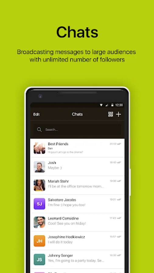 UNLIMITED: Your entire messaging history will require no disk space on your mobile device and will be securely stored on CChat Messenger encrypted cloud for as long as you need it. You can send media and files, without any limits on their type and size.