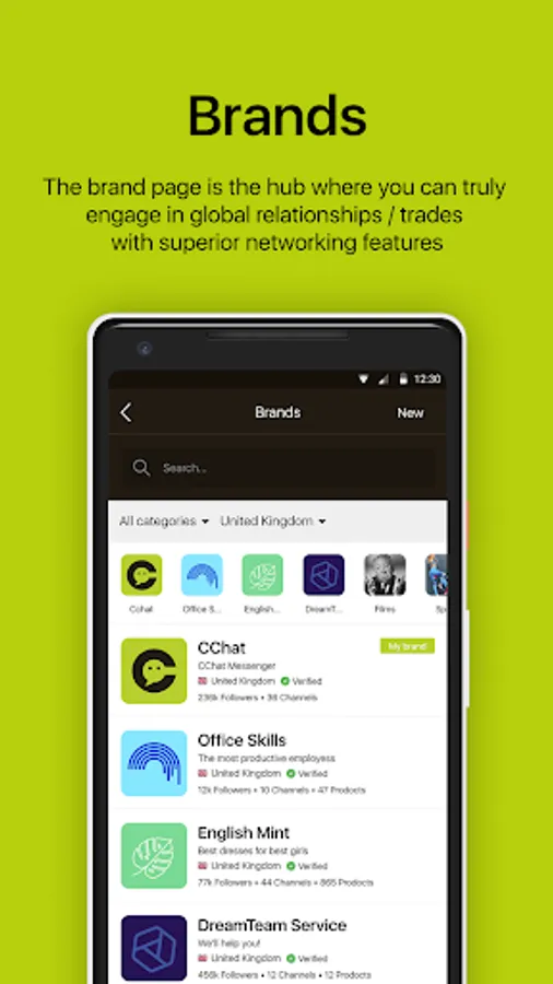 • BRAND: build your own mini-sites and showcase your products and services through the brand global open directory.