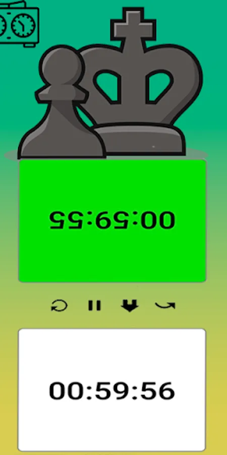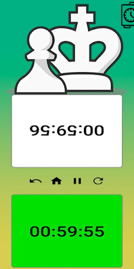 The chess timer makes it easy to select and control chess time. You can start the timer by clicking on the preset time in the menu, or quickly set up your own time settings. If you play chess on a regular basis and can't fit a set of chess clocks everywhere you go, then this app is definitely for you!