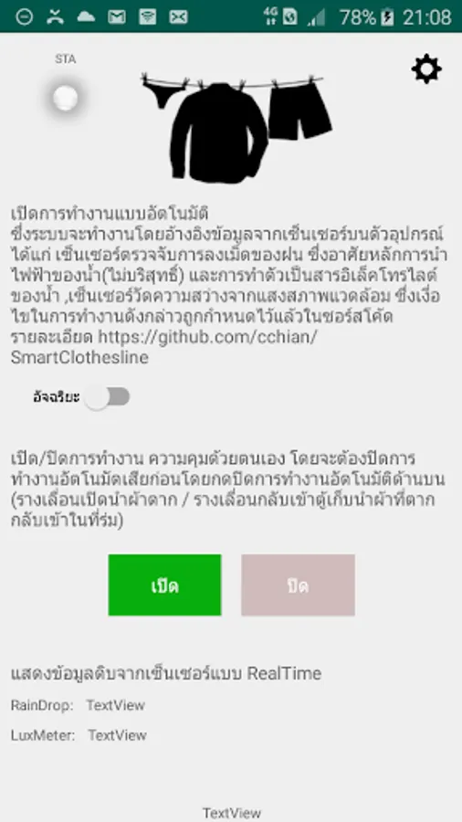 Intelligent clothesline detects rain and thunder. Keep clothes when it rains. Or drying clothes when there is no rain
