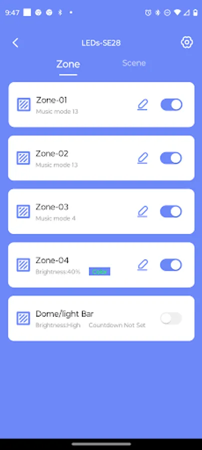 • Create and save lighting scenes. A lighting scene is like a preset for a radio. You can program each of your device’s and zone’s LED’s to a specific color and action for quick access. Such as create Christmas, 4th of July, Halloween, nighttime, and party scenes for a 1 button access later.