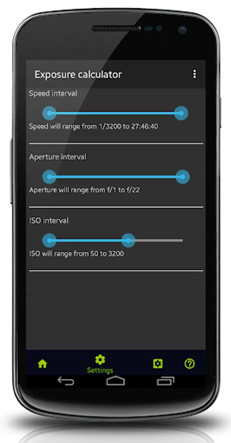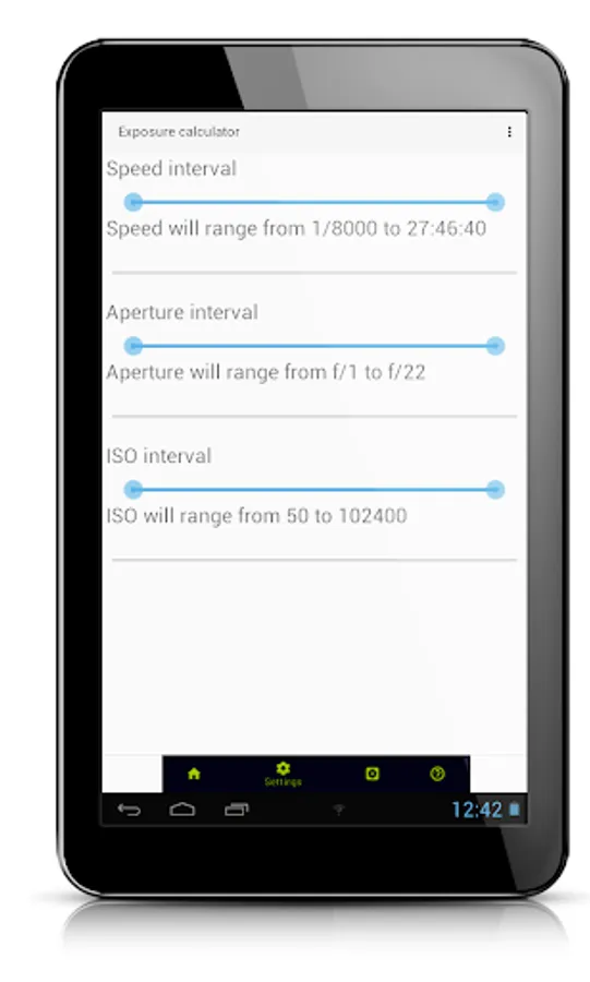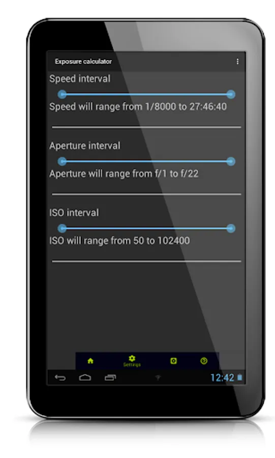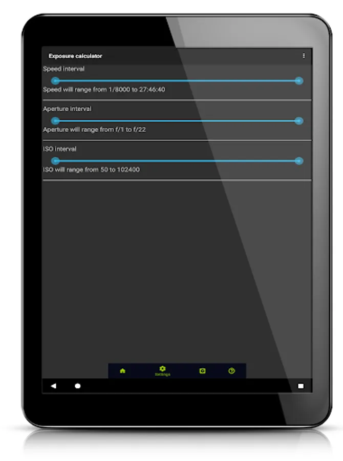 Advanced settings that allow you to configure all speeds, apertures and sensitivities manually.