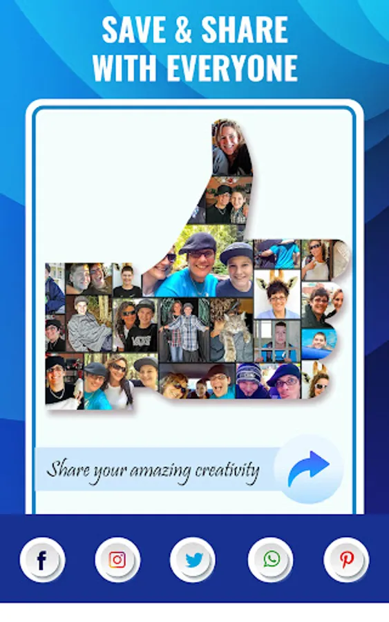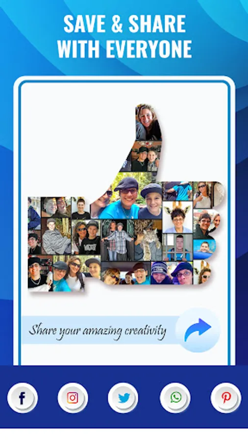 Just select upto 16 pics and our shape collage maker app will mix your family & friends pictures in a harmonious way by blending photos together automatically.