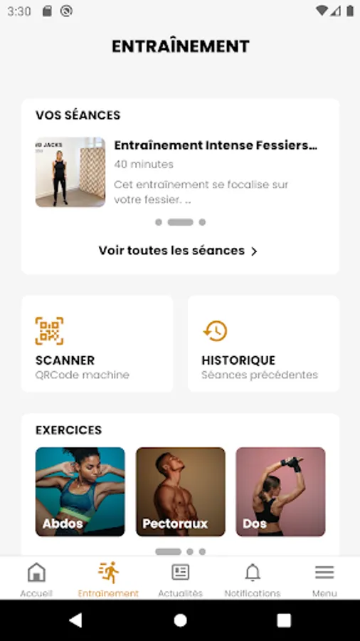 “What should I do to lose weight? to gain muscle? » Find dozens of personalized programs and sessions according to your sex and your goals. By muscle group: "what exercises to shape the glutes?" to develop the mass of the pectorals? » Access an intuitive library of + 250 detailed exercises with our interactive anatomical chart.