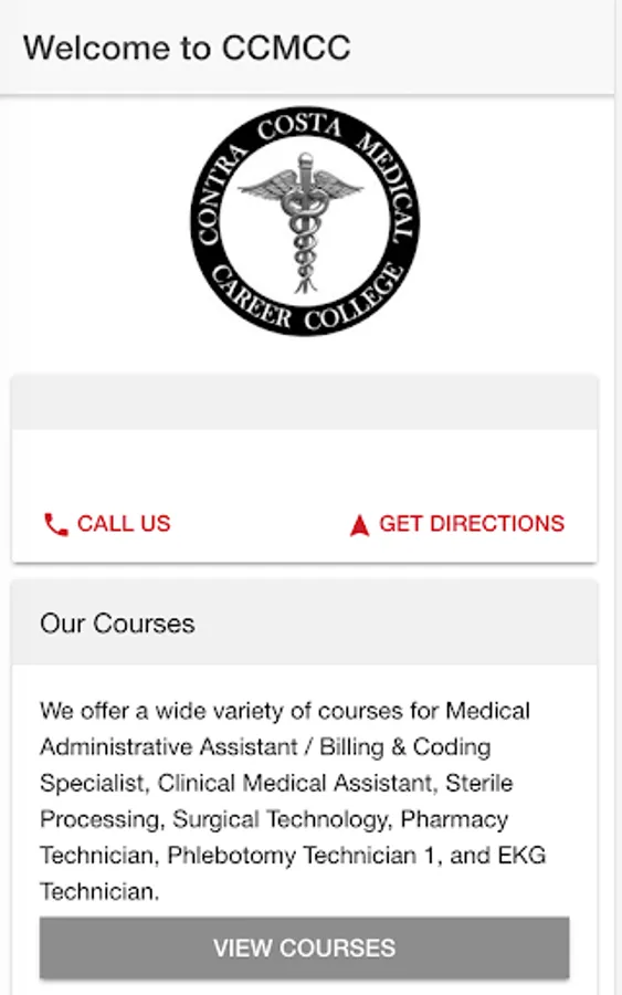 Welcome to the Official App for the Contra Costa Medical Career College. CCMCC Mobile is your connection to the Contra Costa Medical Career College Learning Platform.