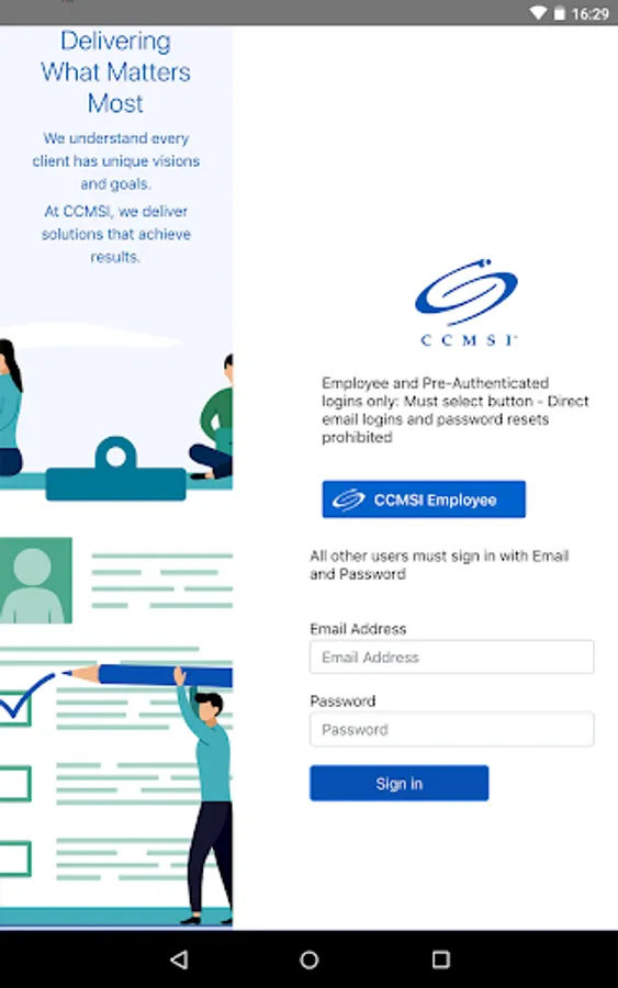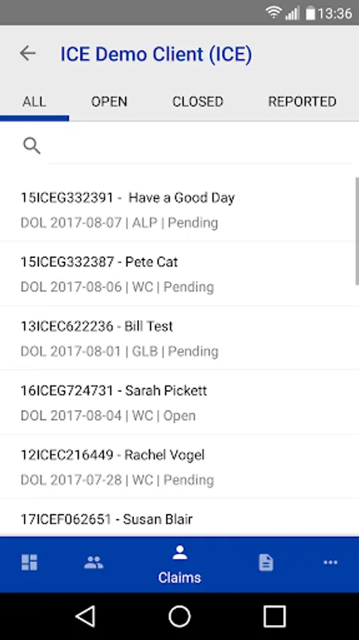 CCMSI Application for Client portal access. This application allows all CCMSI clients to login with their authentication credentials and access their data for claims and claimant information. It provides summary and detailed information on open and closed claims.