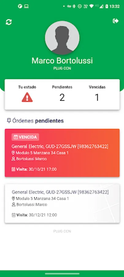 Application for the execution of service orders. APP only for PLUG CCN Technicians.