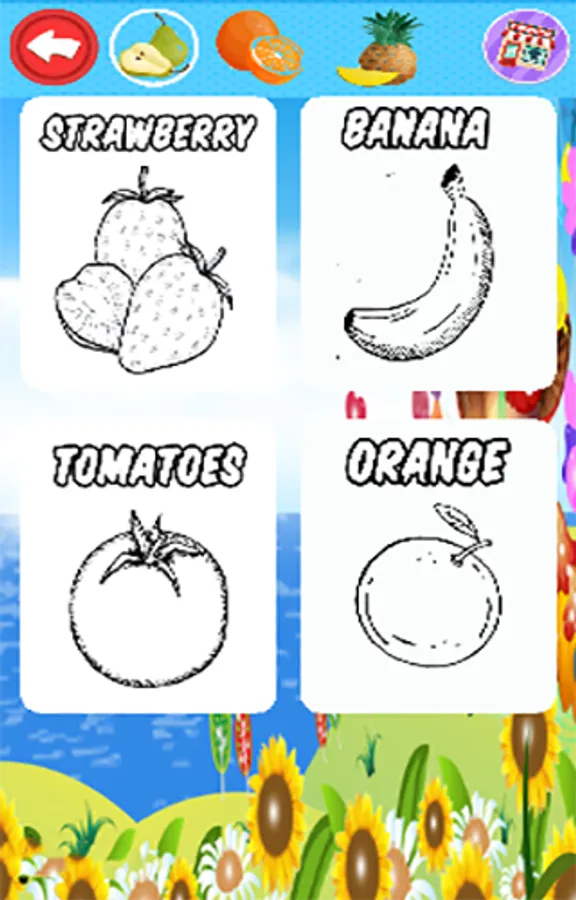 Educational coloring game Learn to color natural vegetables and fruits in English "to encourage the love of nature. The game contains many beautiful pictures of natural vegetables and fruits such as bananas, tomatoes, apples, watermelons, pears, oranges and many more ...