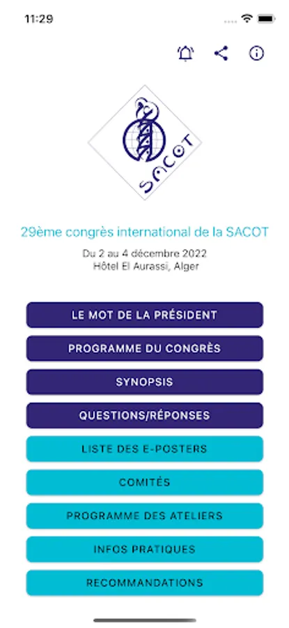 Your SACOT 2022 application offers you access to various information about this event: