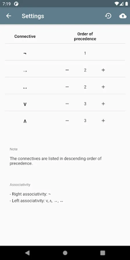 Furthermore, you can choose different precedence orders for the logical connectives.