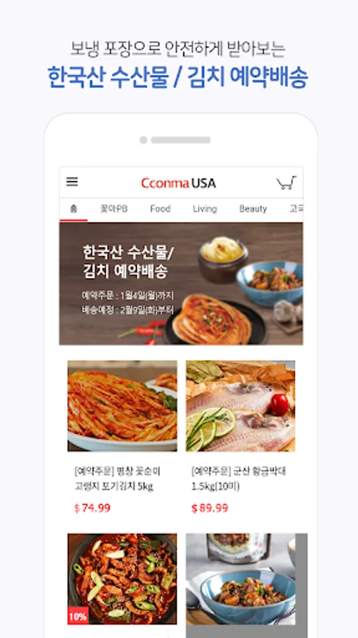 After ordering, you can receive freshly prepared kimchi from Korea, as well as high-quality seafood such as Beopseongpo gulbi, Jeju silverfish, and Wando abalone, etc. through the pre-order system.