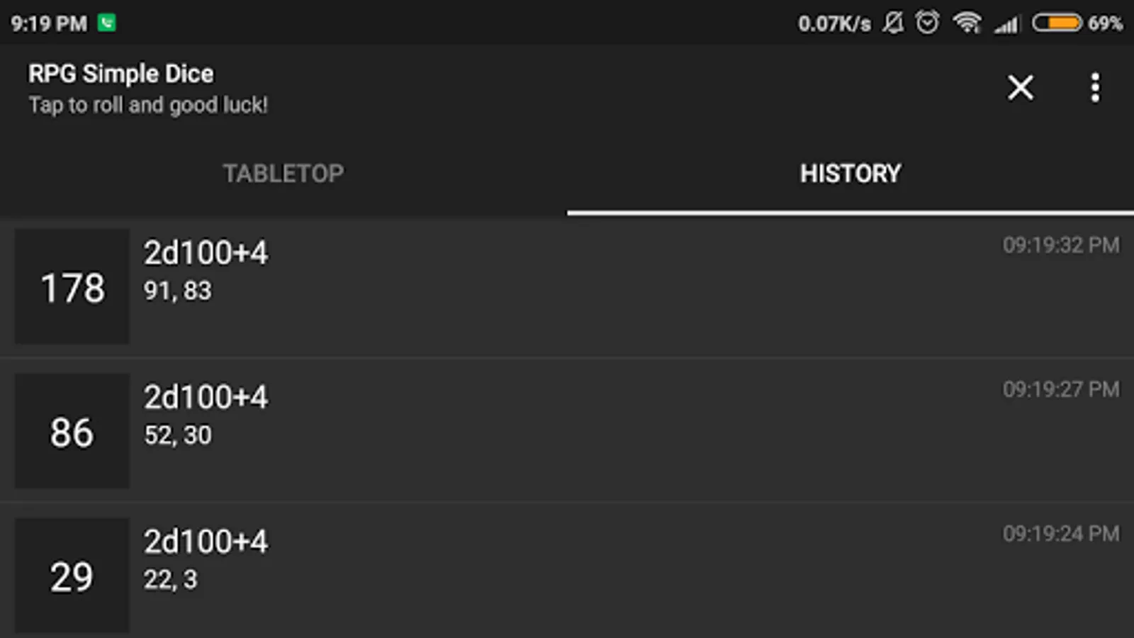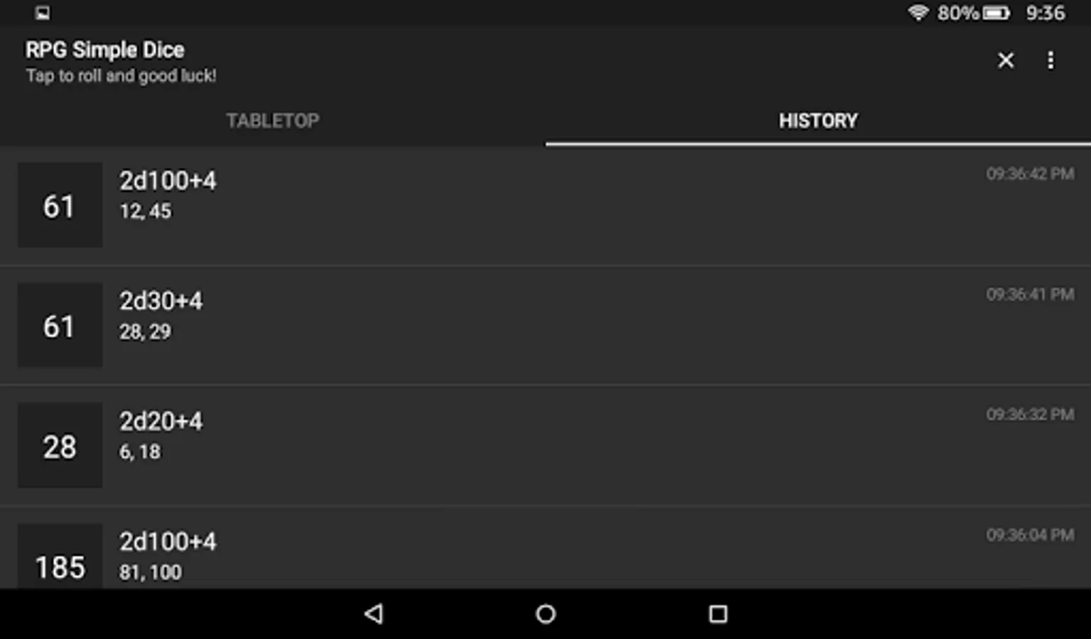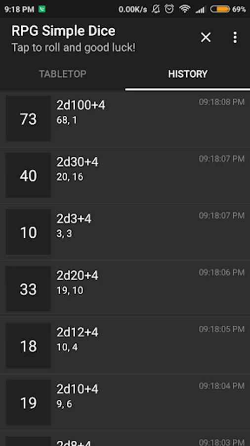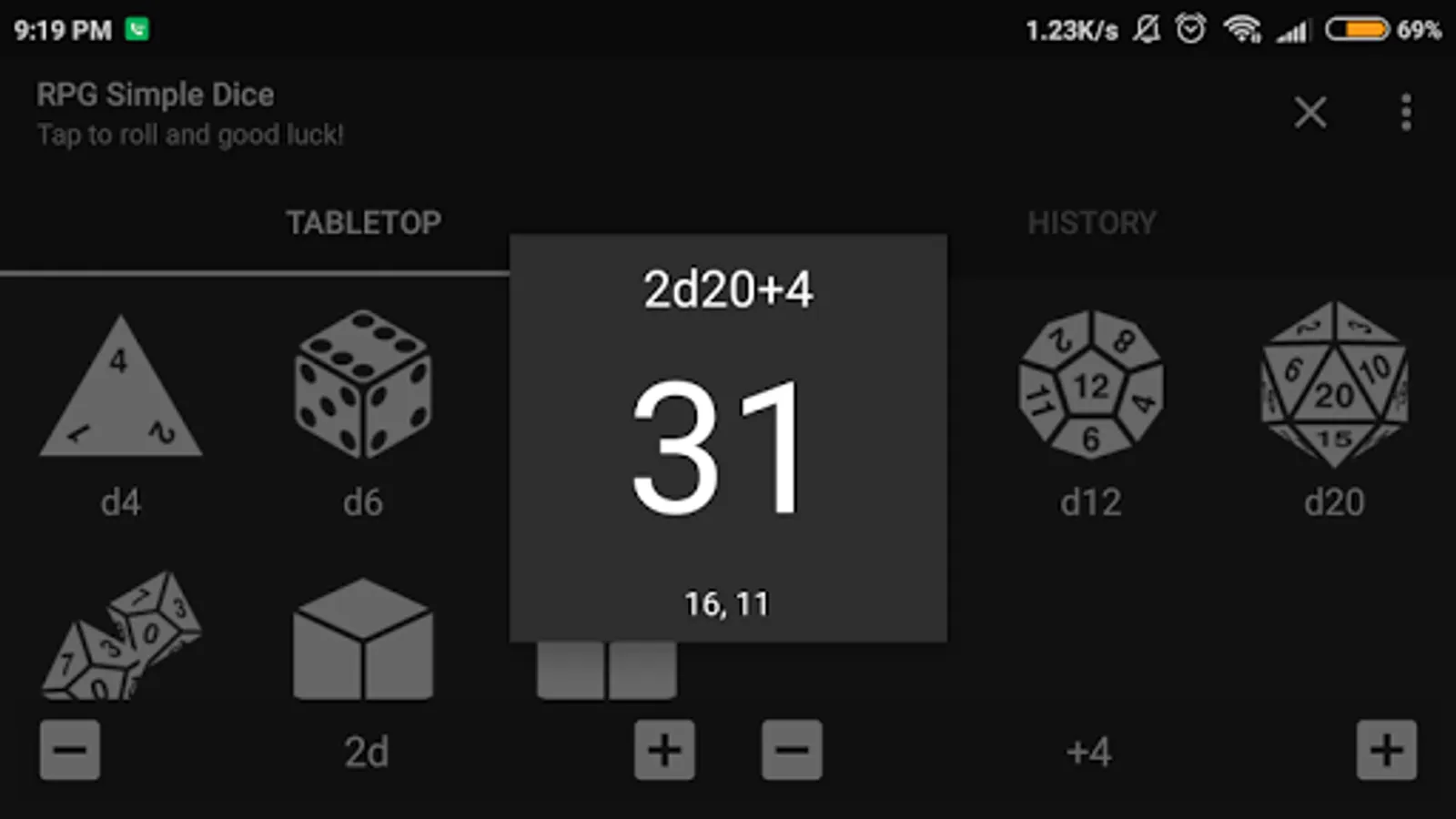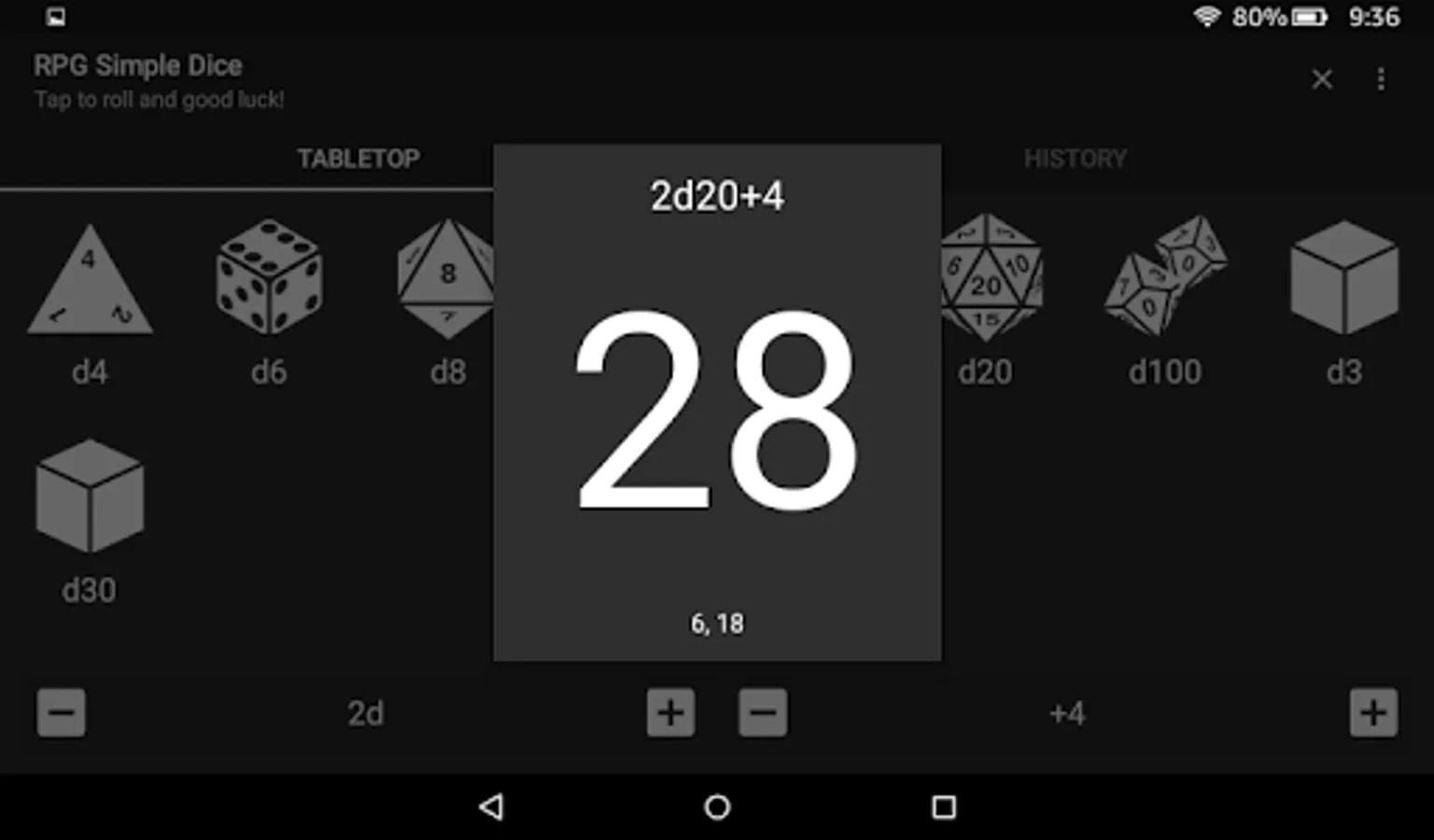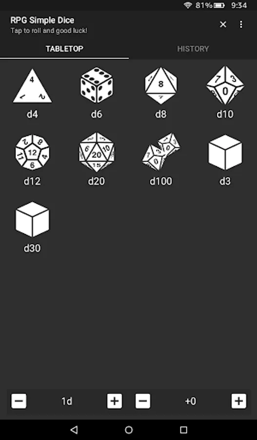 - default dice: d4, d6, d8, d10, d12, d20 and d100