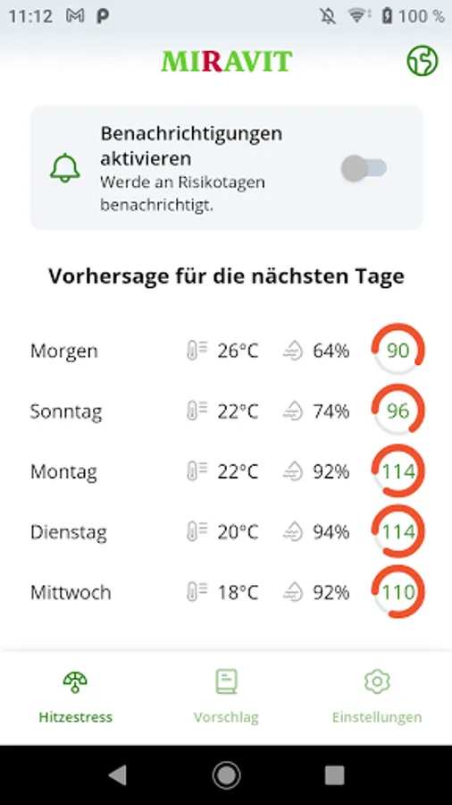 With the app you can display the heat stress level exactly and prepare yourself optimally for the hot days
