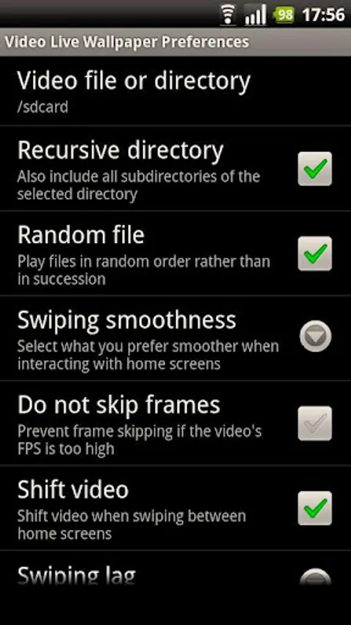 Remember: you need to set up a video source to make this live wallpaper useful. If you plan to make your own videos (some resolution and codec restrictions apply if you want to make it smooth), please see the app's help and visit the app's website to learn what formats are best and to get sample videos.