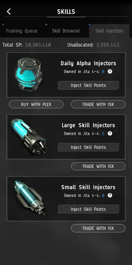 - Jita Market (PLEX, Skill Injectors, Skill Extractors)