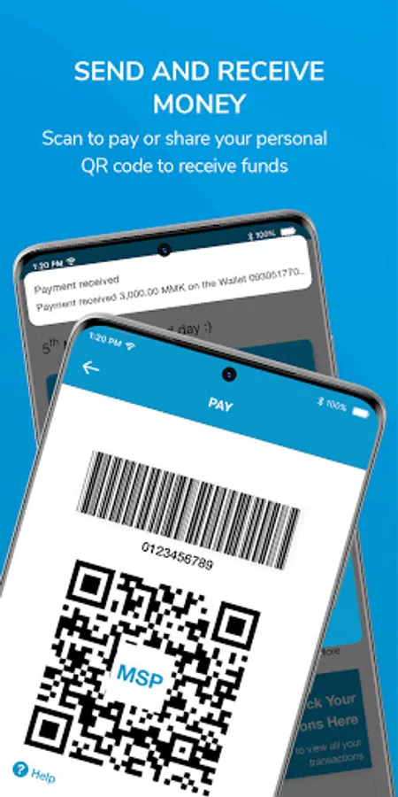 Allow others to scan your QR code to receive money in your mobile wallet.