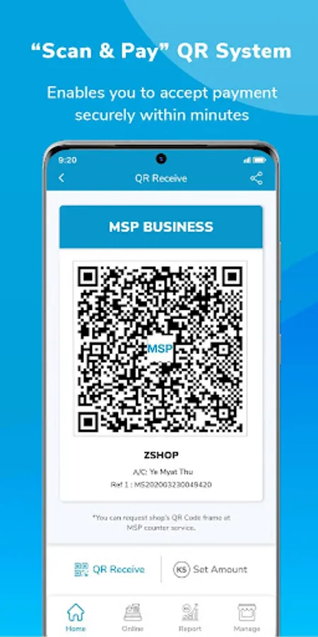 Scan and Pay QR system enables you to accept payment securely within minutes.