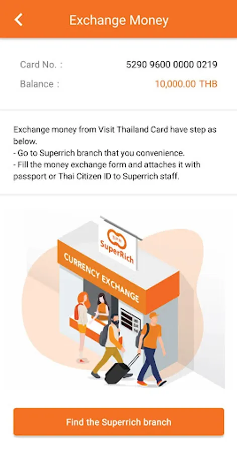 SuperRich M application is for Thailand Visitors, who hold physical Visit Thailand Pre-Paid Mastercard, to manage their spending from the card and get lot of benefits. The card and application are the collaboration of SuperRich, a leading money exchanger; 2C2P, a leading cash and card payment processor in Southeast Asia; and Mastercard. Features on the application: