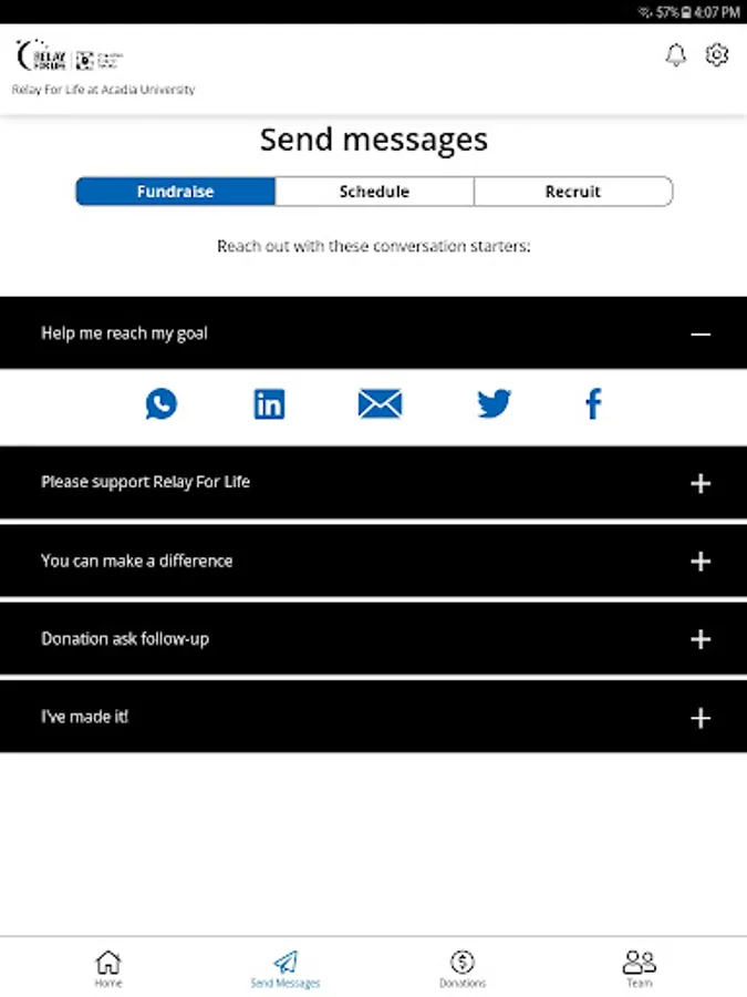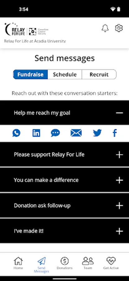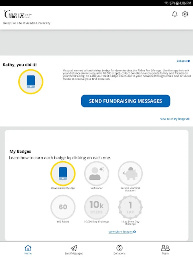 Do your fundraising on the go with your Canadian Cancer Society Relay For Life application. Update your fundraising page, send emails, check your fundraising progress, and connect to Google Fit to track your physical activity with other Canadian Cancer Society Relay For Life participants and teams – all from the palm of your hand. The Canadian Cancer Society Relay For Life application is a great tool to track your fundraising progress, and to keep current on all Canadian Cancer Society Relay For Life news!