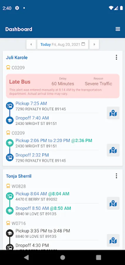 CCSD Onboard provides transportation related information for parents to track their student's bus location, as well as to view their transportation overall schedule.