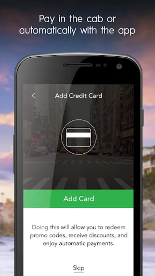 Make payments fast and seamless by adding a credit card to the app. Or pay directly in the cab with either cash or by swiping a credit card.